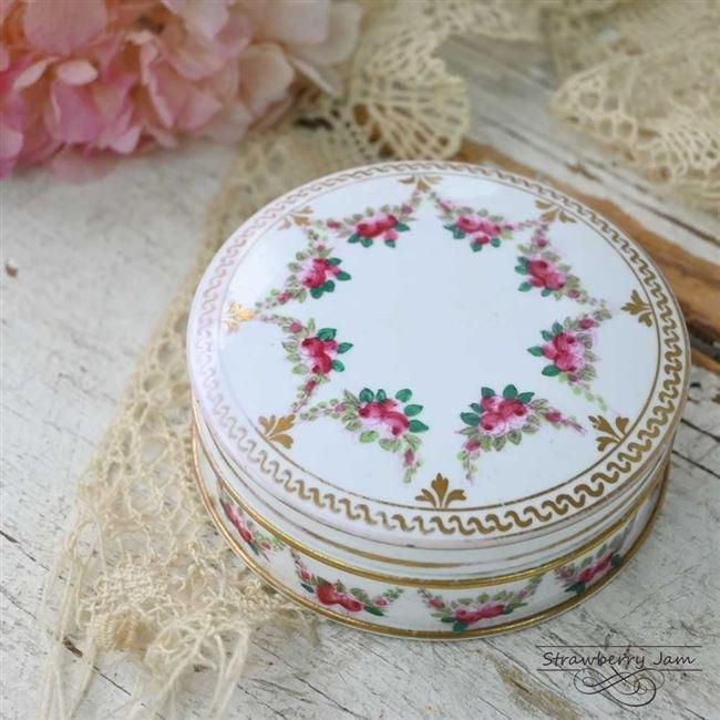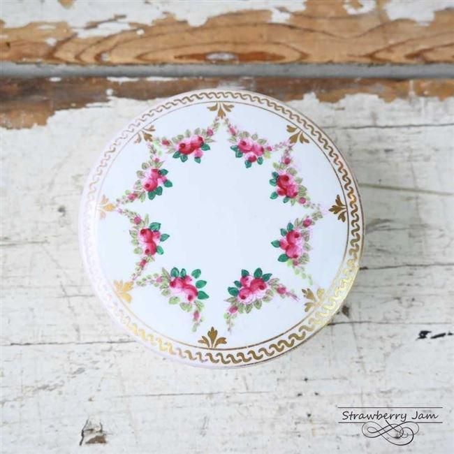 送料込!英国アンティーク ローズバンド 陶器 ピルケース イギリス
