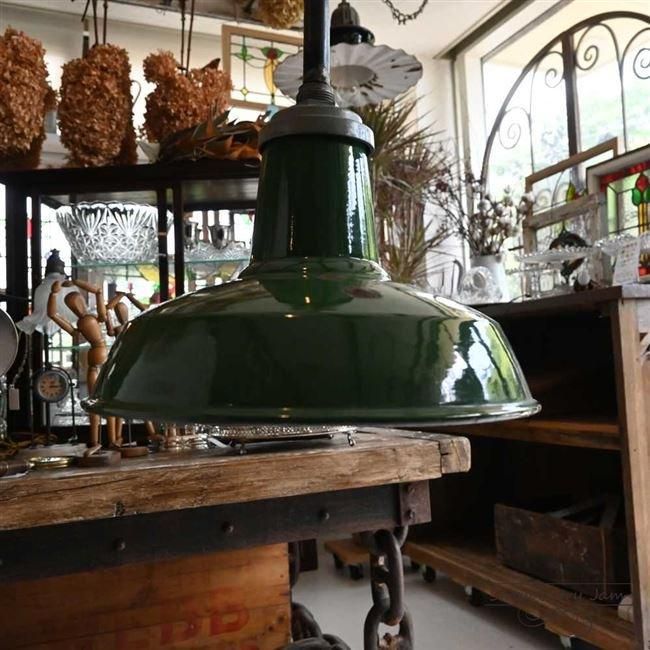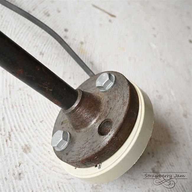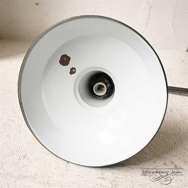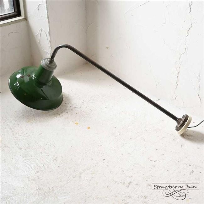 ところどころ錆ついたホーローのシェードとアイアンの長めのバーが力強さを感じさせます