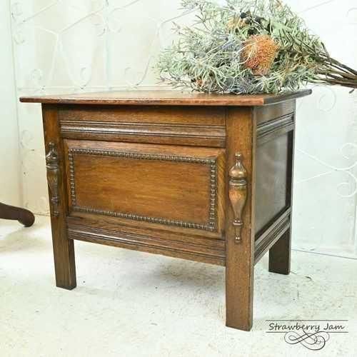 英国アンティーク オーク コファー リネンボックス スツール アンティークチェスト 収納 ベッド タンス サイドキャビネット イギリス