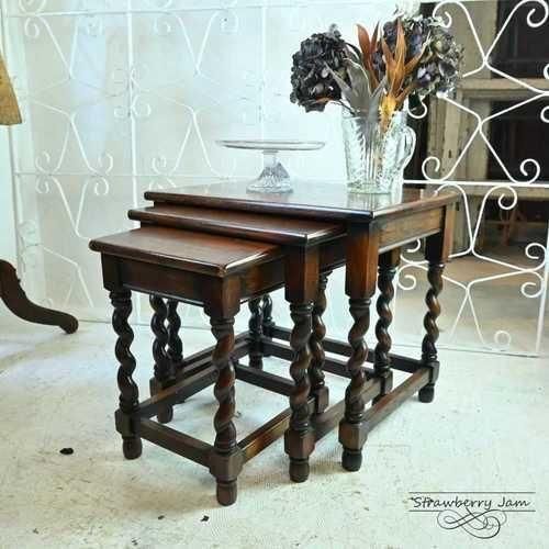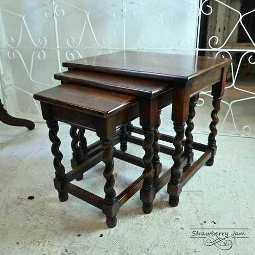 1930年代のオークツイストデザインのネストテーブル。