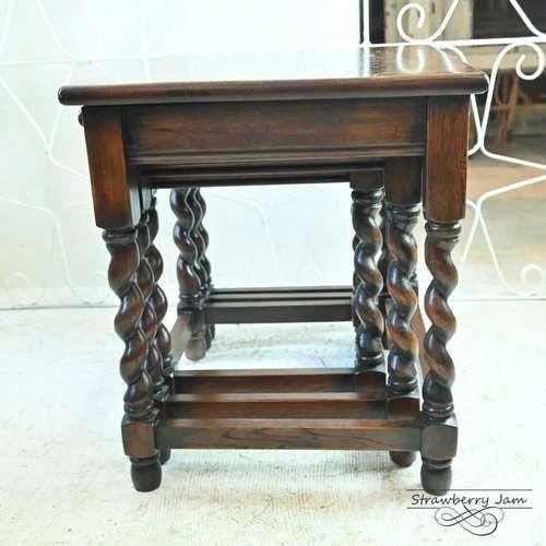 英国アンティーク ネストテーブル コーヒーテーブル ツイスト スモールテーブル 飾り台 花台 オーク イギリス