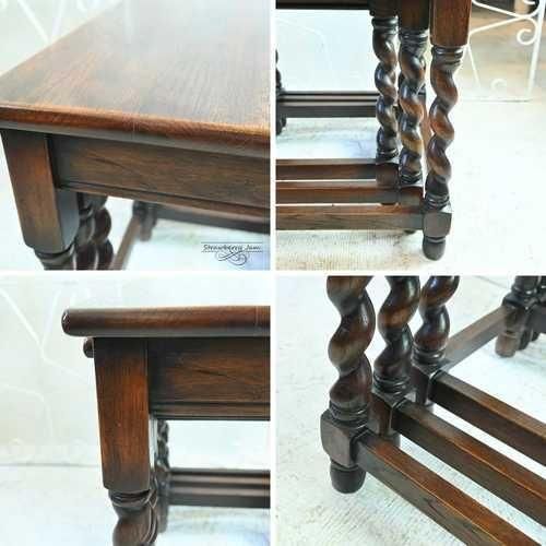 L3705-287 英国アンティーク ネストテーブル コーヒーテーブル ツイスト スモールテーブル 飾り台 花台 オーク イギリス