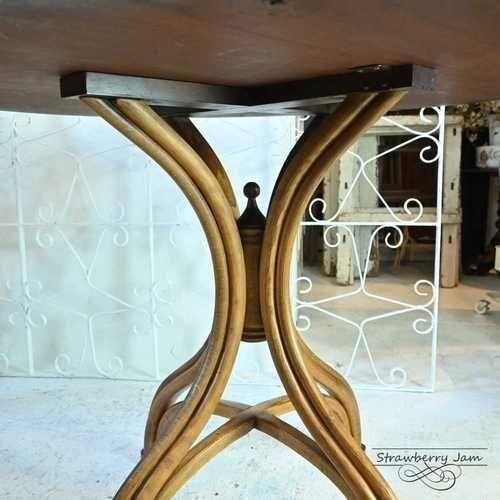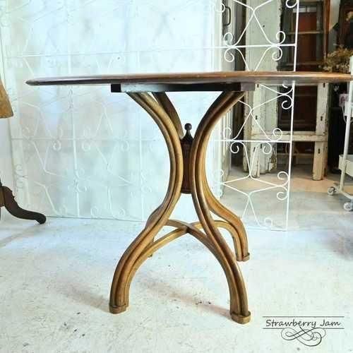 曲げ木の脚がなんとも美しく小ぶりのラウンドテーブルのなので