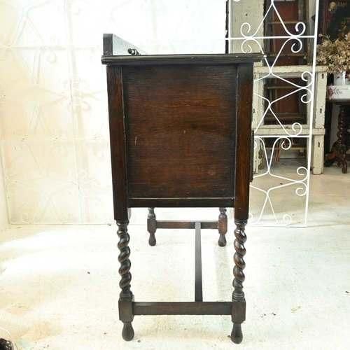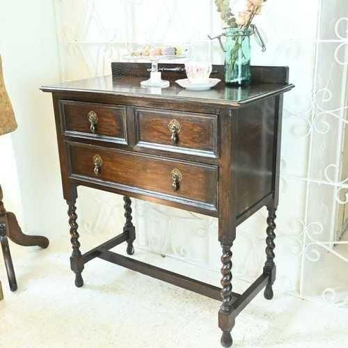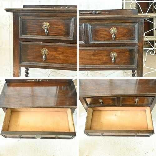 英国アンティーク スモール チェスト 2段 引き出し 収納 レンジ台 花台 テーブル オーク パソコン台 ツイスト イギリス