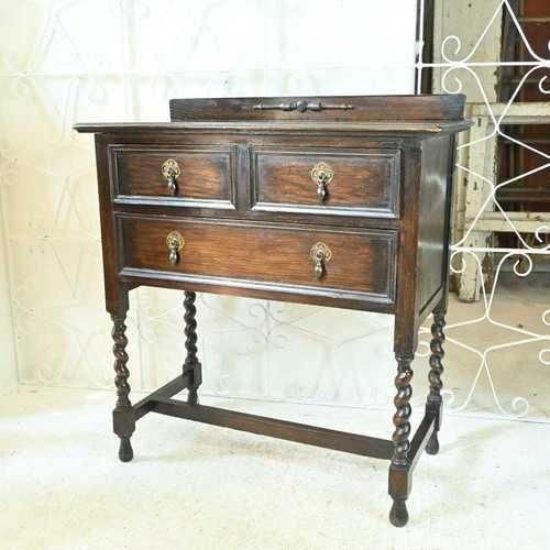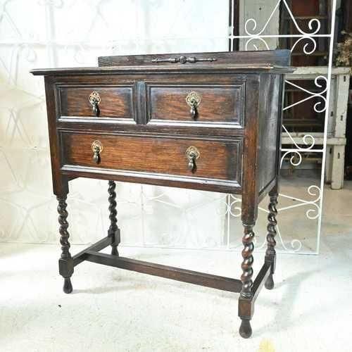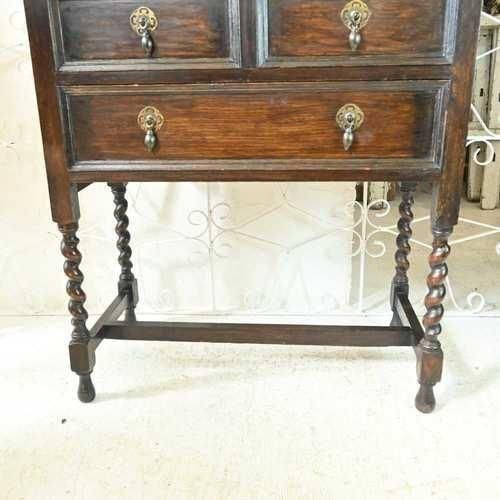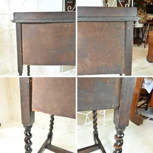 L3705-5 英国アンティーク スモール チェスト 2段 引き出し 収納 レンジ台 花台 テーブル オーク パソコン台 ツイスト イギリス