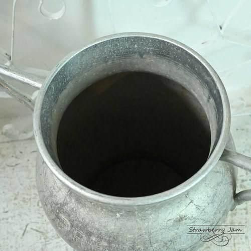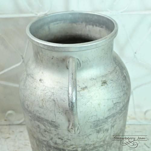 使い込まれたアルミの質感や小傷、すべてが愛おしい風合いに感じられるミルクタンク。