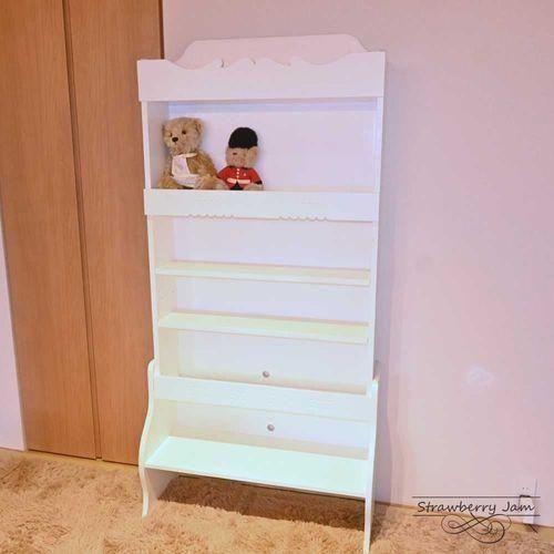ホワイトカラーの可愛らしいデザインのブックキャビネットです。
