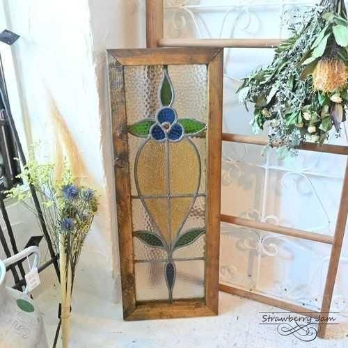 英国アンティーク ステンドグラス 窓枠 建材 インテリア DIY 小屋 ステンド イギリス
