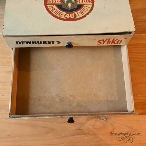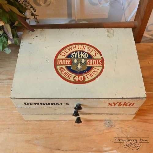 IFU-409 英国アンティーク ソーイングボックス 3段 SYLKO スプールキャビネット ボックス 収納ボックス 小物入れ イギリス