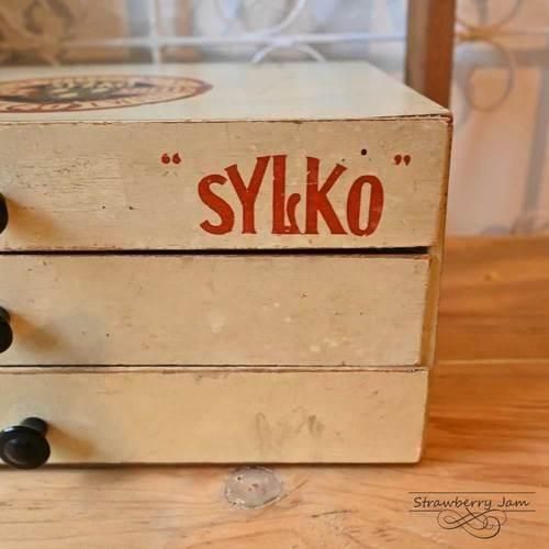 英国アンティーク ソーイングボックス 3段 SYLKO スプールキャビネット ボックス 収納ボックス 小物入れ イギリス