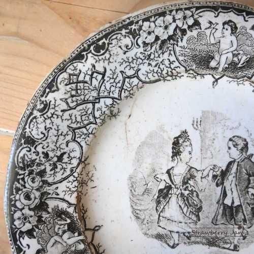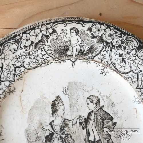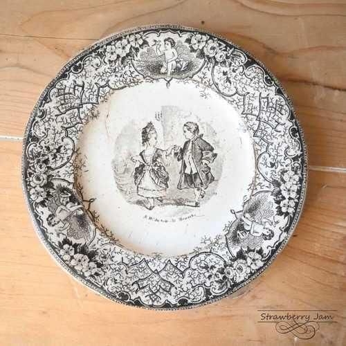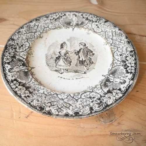 送料込!フランスアンティーク グリニー Grigny Rhône グリニー・ローヌ お皿 食器 エンジェル プレート ケーキ皿 フランス