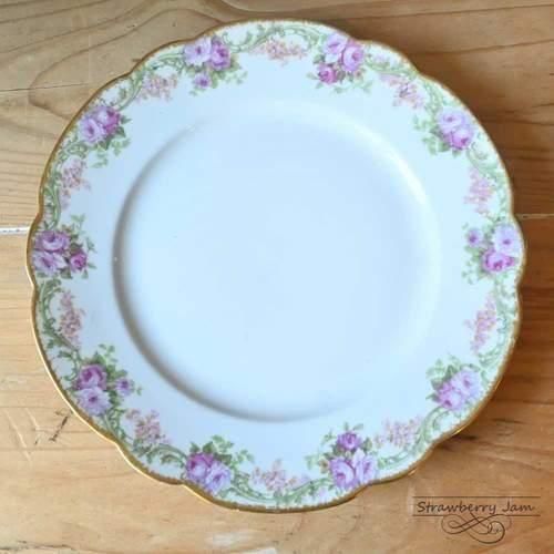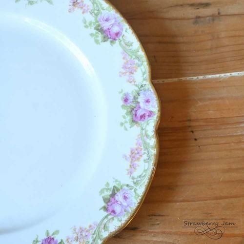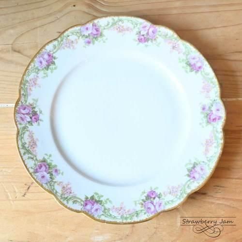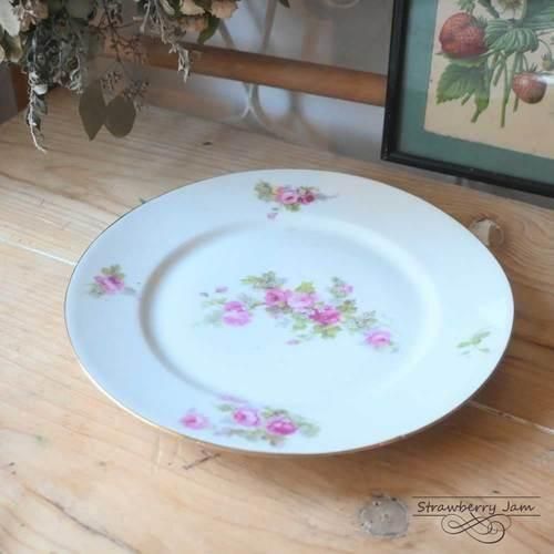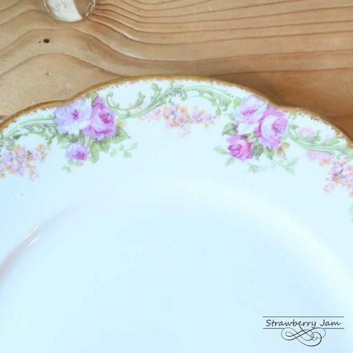 送料込!フランスアンティーク リモージュ お皿 食器 バラ お花 プレート ケーキ皿 フランス