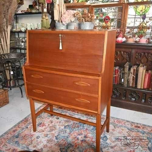 英国ヴィンテージ ジェンティーク jentique ライティングビューロー デスク 勉強机 パソコン台 サイドキャビネット チーク 北欧 学習机 イギリス